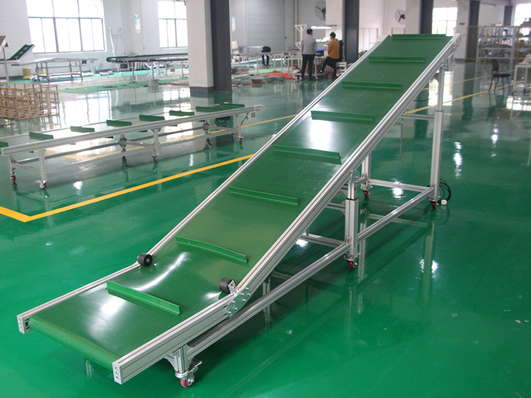 爬坡輸送機的輸送傾角大,最大可達90°,是大傾角輸送和垂直提升的理想設備。因此可以節約占地面積,節省設備投資和土建費用,取得良好的綜合經濟效益。